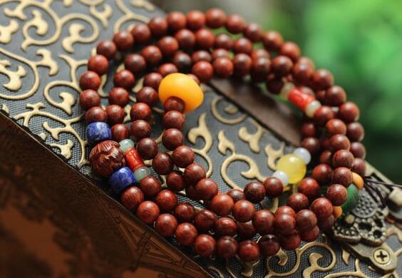 小叶紫檀制作的手串红得庄重,紫得深邃,包浆细腻,沉稳大气,华丽高贵,佩戴在手气质非凡,极品之中的金星更是璀璨夺目。