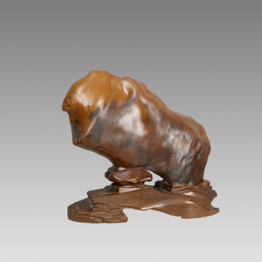 该作品全身金黄,纹理纵横,色泽深沉,造型大气浑厚,生动形象,强劲有力。