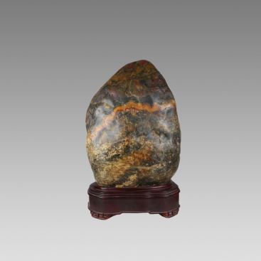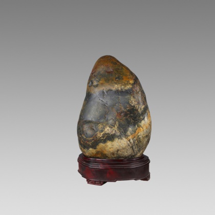 柳州三江彩卵石之所以特别受到赏石界众多石友的青睐,就是因为它蕴含着这种深层次的中国传统文化的精神因素。不仅在居室中能营造出喜庆的氛围,而且在琳琅满目、万石争雄、各显神韵的奇石展销会上,也能一石独秀突显光辉。