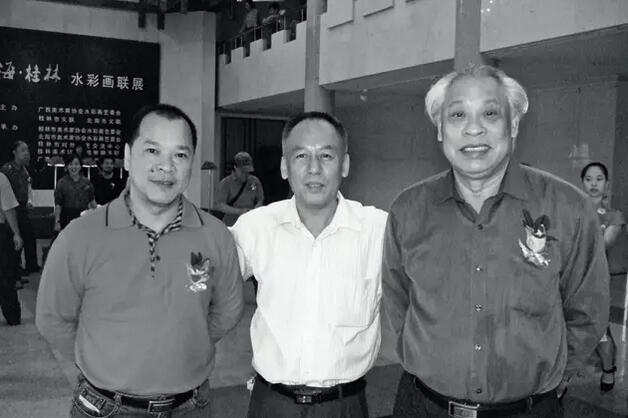 2009年北海桂林水彩画联展开幕式画家和桂林市美协名誉主席刘绍荟、桂林市美协主席白晓军合影。
