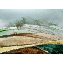 画如其人。崔 明达水彩作品总是那么沉静,那么从容,那么朴实,那么坦诚。他的画里常见逸笔,多呈逸境,看上去往往几近“逸品”了。他作画不以大势奇崛取胜,而常以一种 平和散淡去亲和自然。他画的多是常见的桂北乡村小景,村边的小溪、屋后的菜园、路边的竹篱、坡上的草垛,无不是他意有所属,情有所钟,可见一种博爱的胸 怀。生于斯,长于斯,甲天下的桂林美景陶冶了他的情趣,也保留下他不变的纯真。