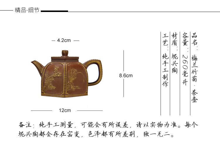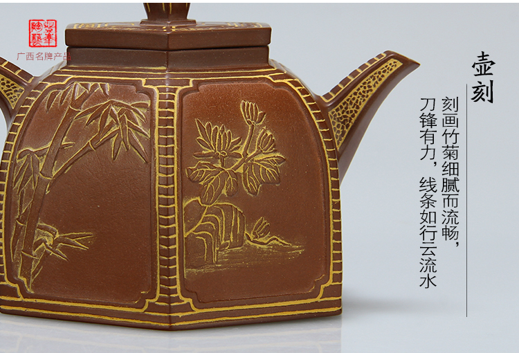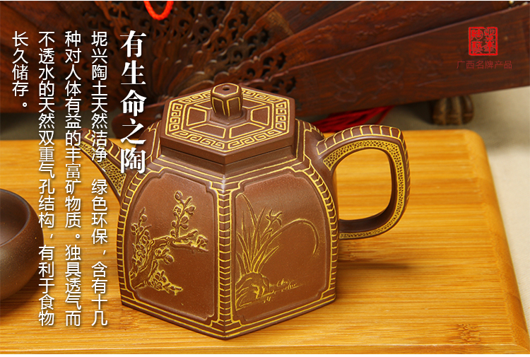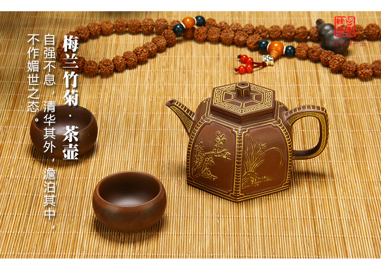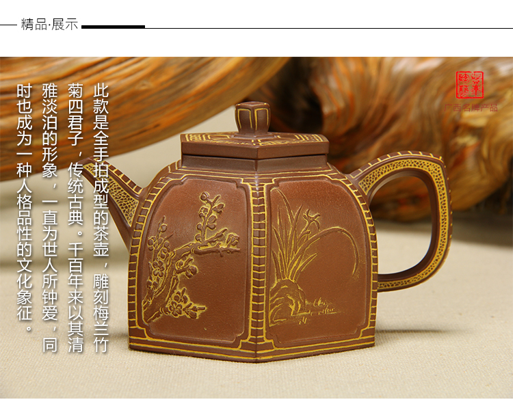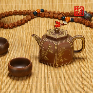 • 商品名称:梅兰竹菊-茶壶 坭兴陶 登峰