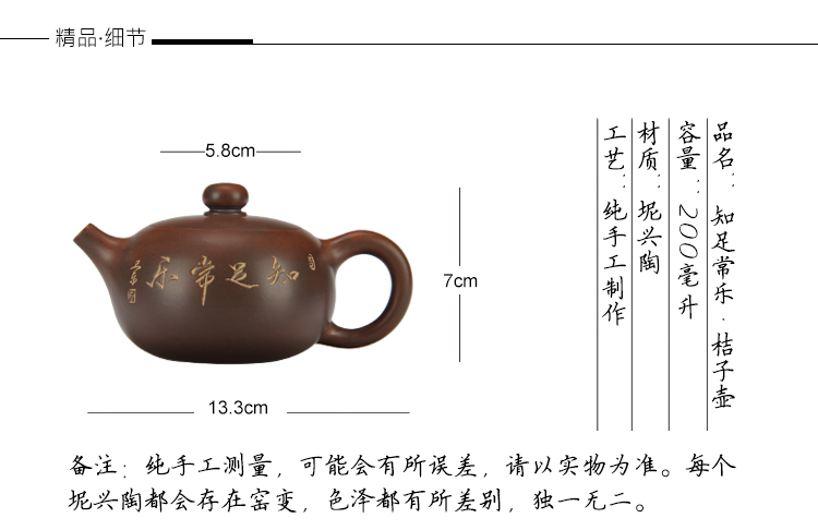 • 商品名称:知足常乐-桔子壶 坭兴陶 登峰
