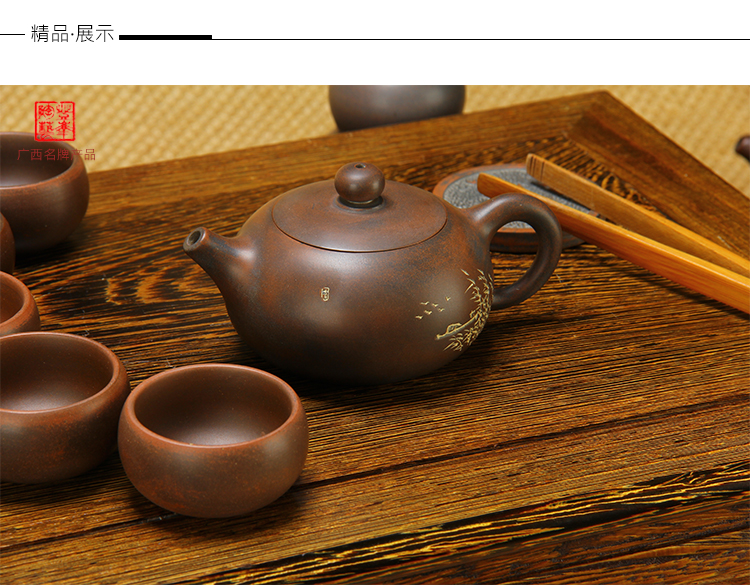 • 钦州坭兴陶,土是源自于钦江东西两岸的天然矿物土,是我国地域性的传统手工艺品,产于钦州。坭兴陶也称为“钦州的官窑”,只有钦州的坭土做出来的陶,才称之为坭兴陶