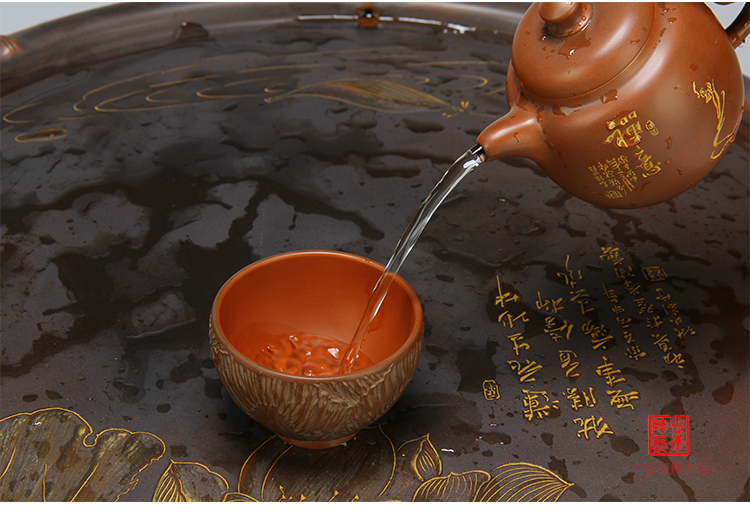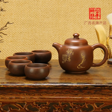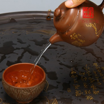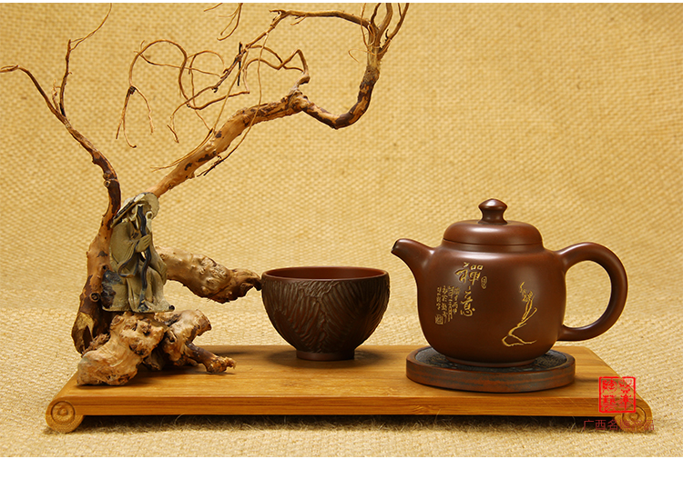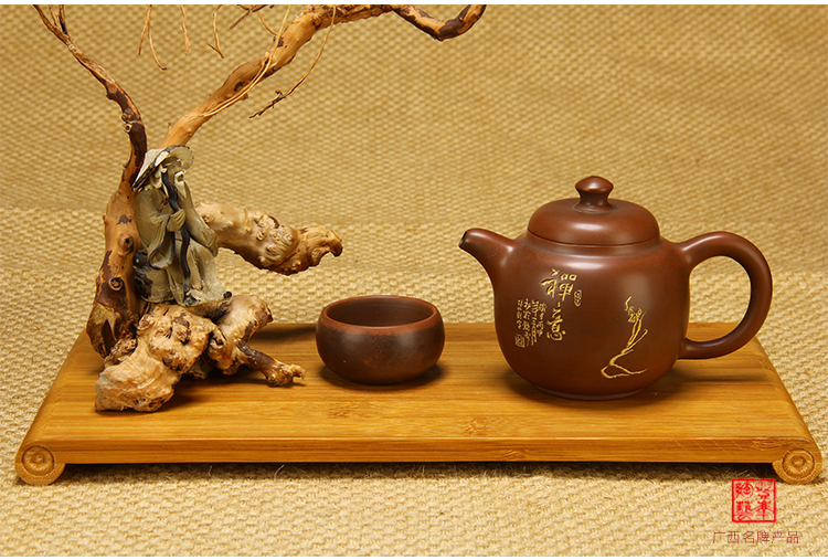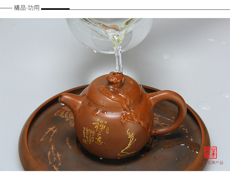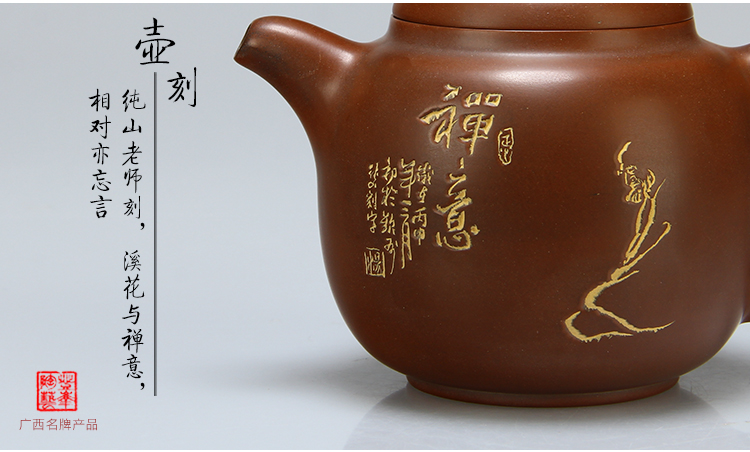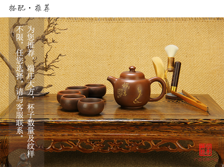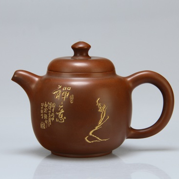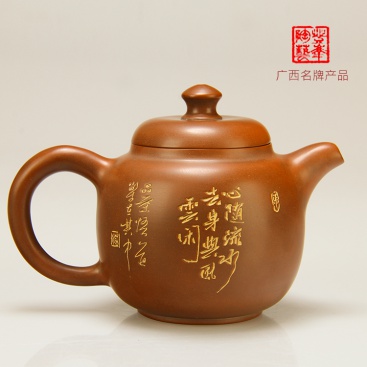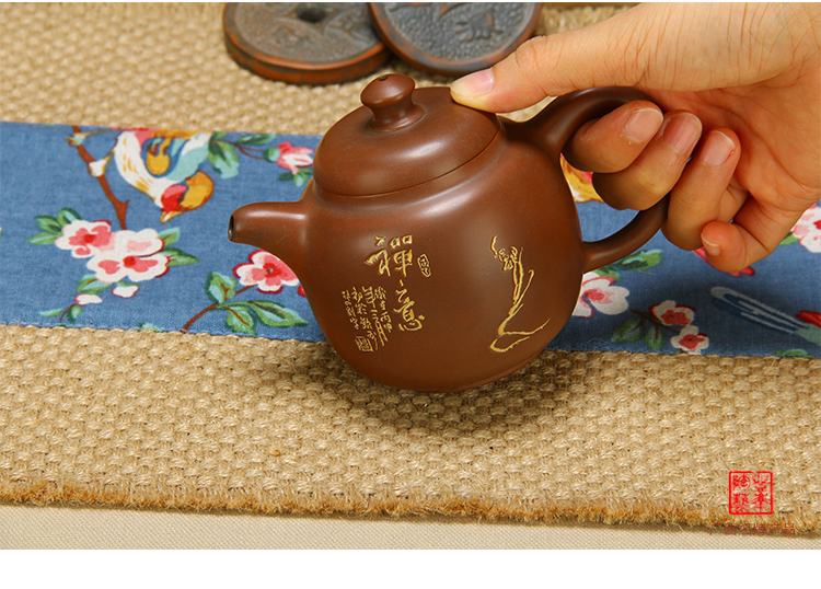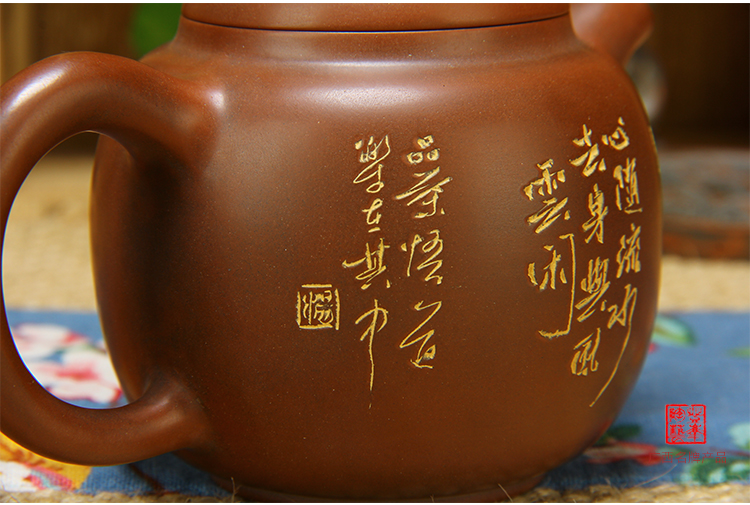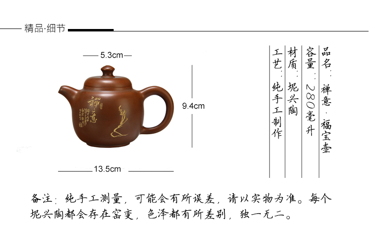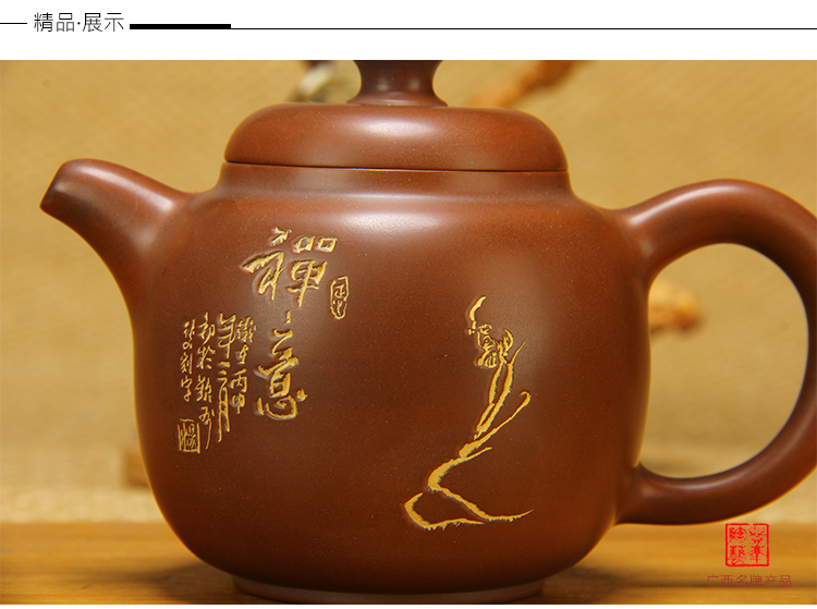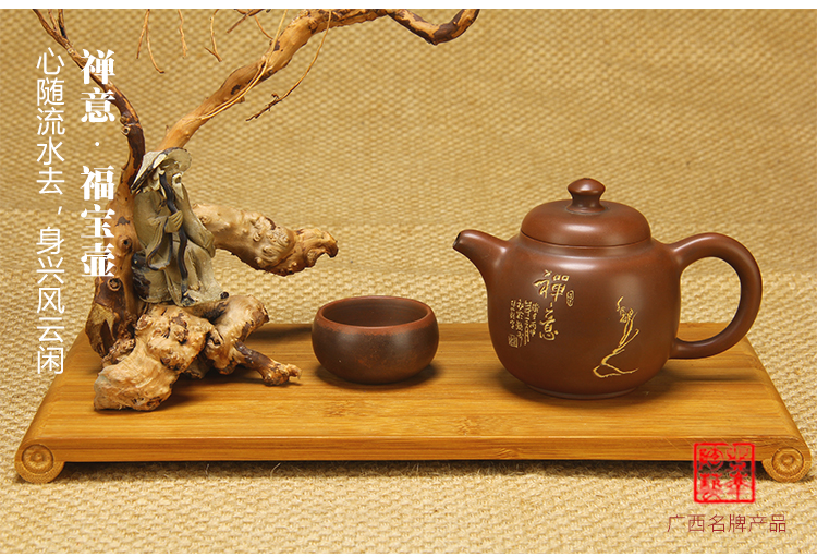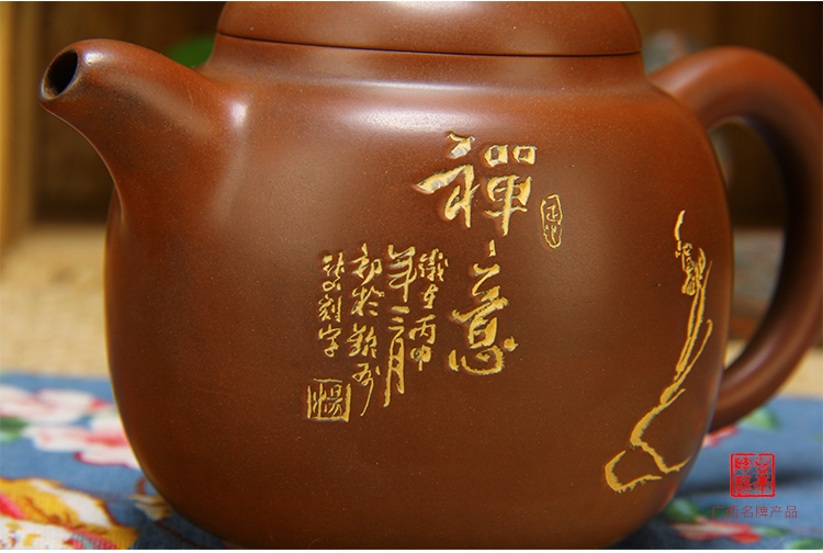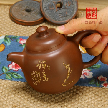 • 禅道 全手工福宝茶壶 纯手工精雕刻 陶刻书法