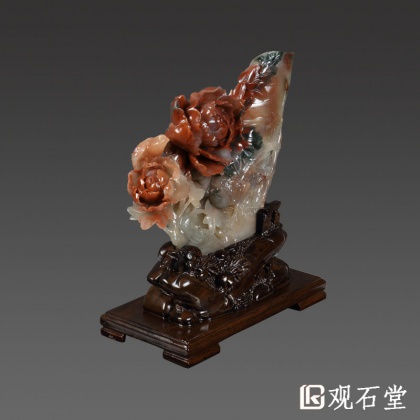 牡丹雍容大度,花开富贵,是吉祥富贵的象征,此雕件很好的诠释了牡丹朝阳的特色,赋予了高贵典雅的气质。