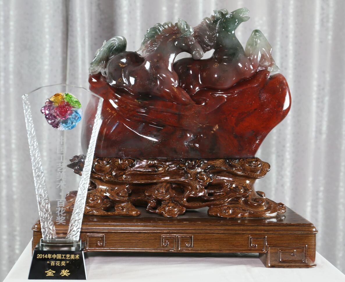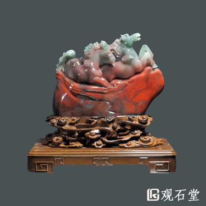 两匹神马正踏彩云而去,让人联想到天马奔驰神速,似腾起在空中飞行一样动人。